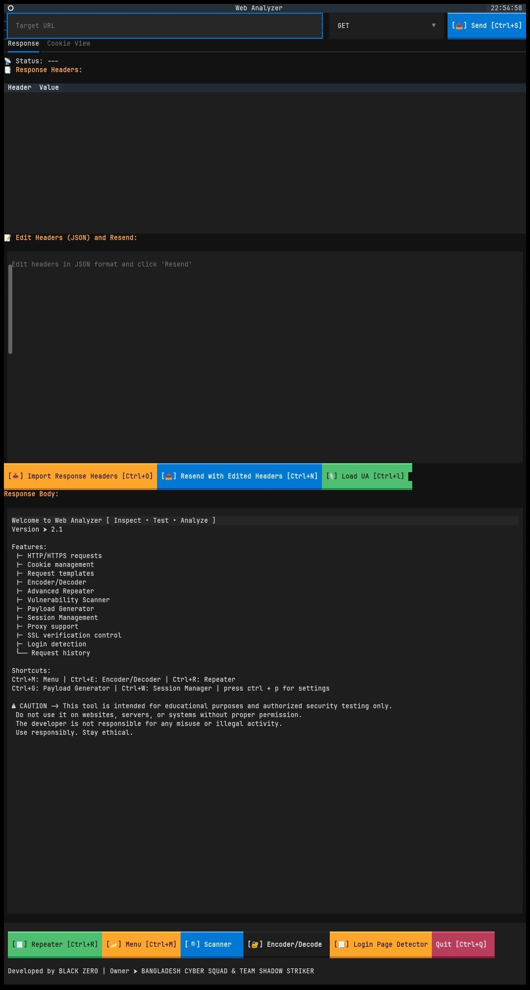 Web Analyzer is a modern, terminal-based web inspection & security testing lab built using Python and Textual.