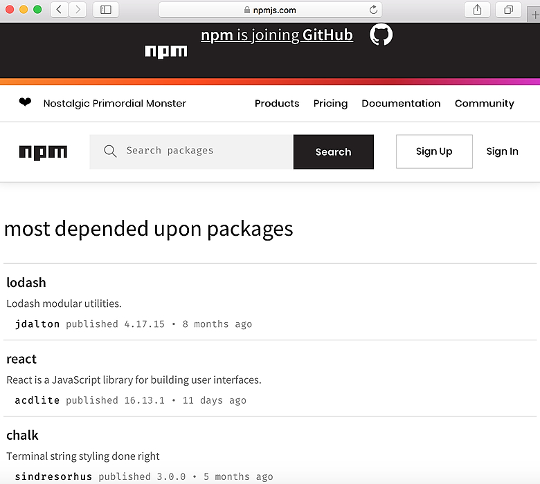 source, https://www.npmjs.com/browse/depended. The ordering, descriptors, and publisher accreditation are coursey of npmjs.com.