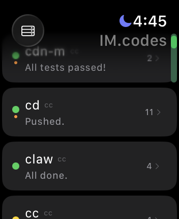 Supports iPhone, iPad, and Apple Watch. Also available as a web app and via npm install -g imcodes (daemon CLI).