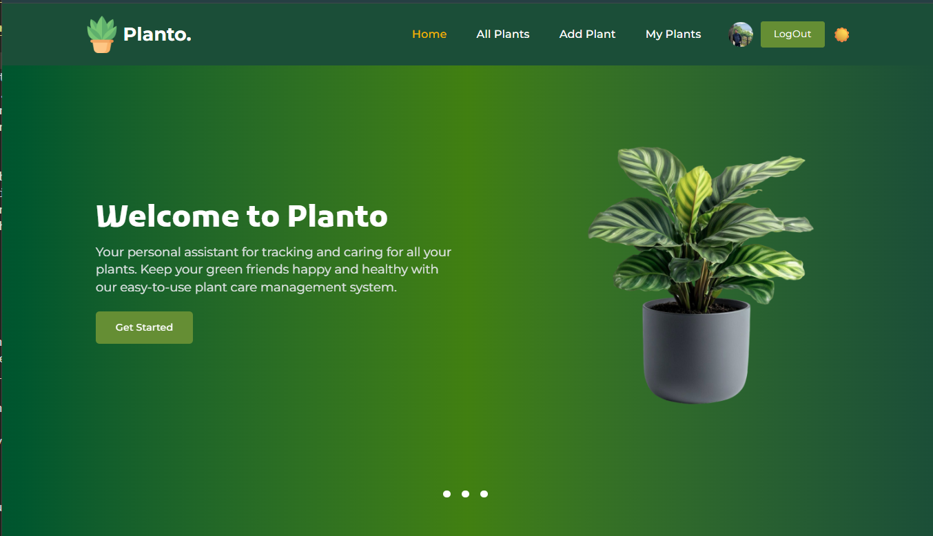 Planto — a full-stack, mobile-responsive web application designed to help users manage and monitor the care of their indoor and outdoor plants. This application will serve as a digital assistant for plant enthusiasts, allowing them to track daily care tasks such as watering, fertilizing, checking health status, and more.